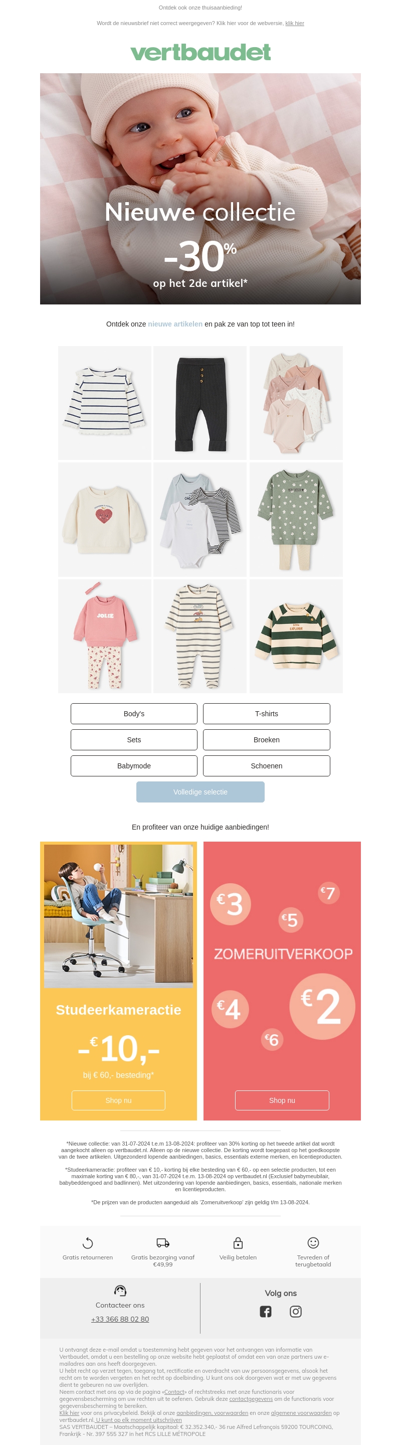Maak kennis met de nieuwste babycollectie van Vertbaudet! Geniet nu van 30% korting op het tweede artikel. Verwen je kleintje met trendy kleding. Ontdek ook onze studeerkameractie en zomeruitverkoop voor nog meer aanbiedingen!