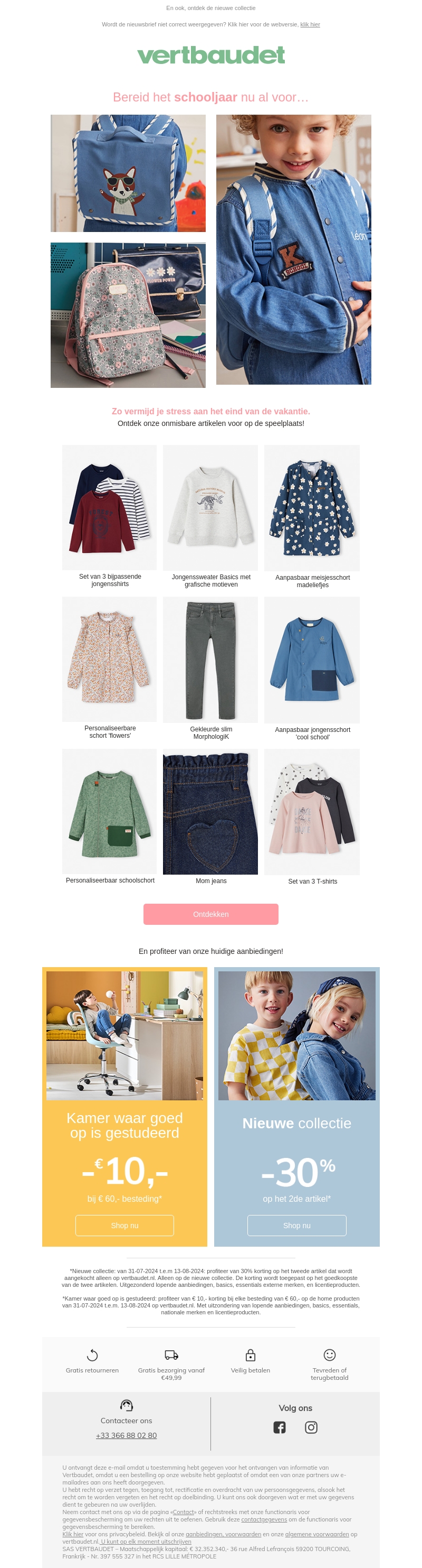 Bereid je voor op het nieuwe schooljaar met Vertbaudet! Ontdek onze ruime collectie aan schoolspullen, kleding en accessoires voor kinderen. Profiteer van geweldige kortingen tot wel 30% en maak je kinderen klaar voor een fantastisch schooljaar. Mis het niet!