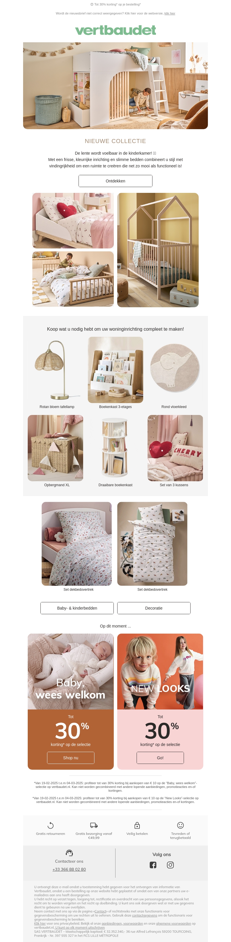 De lente is aangebroken in de kinderkamer met de nieuwste collectie van Vertbaudet. Geniet van tot wel 30% korting op geselecteerde items. Ontdek slimme bedden, decoratieve accessoires en meer om uw woninginrichting te voltooien. Profiteer nu van deze exclusieve aanbieding en transformeer elke kamer met stijl. Mis deze kans niet voor verfrissende en functionele veranderingen.