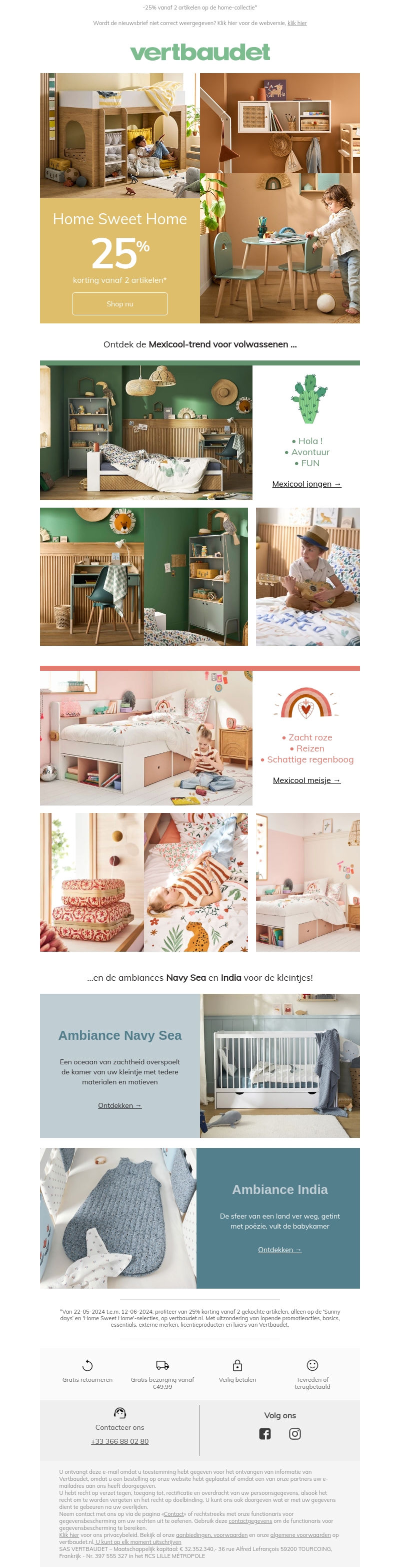 In deze nieuwsbrief ontdek je de nieuwste inrichtingstrends voor de kinderkamer. Van de vrolijke Mexicool stijl, zowel voor meisjes als voor jongens, tot de serene Ambiance Navy Sea en India. Mis de kans niet om 25% korting te krijgen bij aankoop van twee artikelen uit de home-collectie!