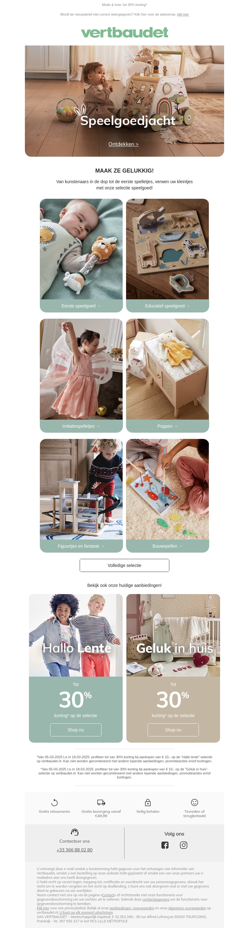 Start de speelgoedjacht met onze nieuwste collecties! Van educatief speelgoed tot imitatie- en bouwspellen. Maak ze gelukkig met deze zorgvuldige selectie en geniet van 30% korting op geselecteerde items. Shop de volledige collectie en verras je kleintjes met kwaliteit en creativiteit.