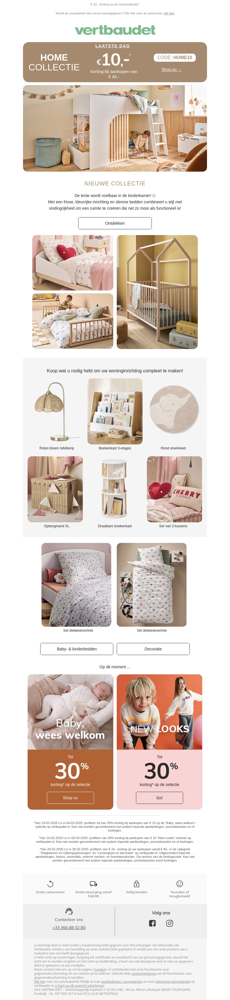 De nieuwe Home-collectie van Vertbaudet is gearriveerd! Ontdek frisse, leuke items en slimme bedden voor de kinderkamer. Profiteer van kortingen tot 30% op geselecteerde producten en een €10 korting bij aankopen boven de €40. Haast je, het is de laatste dag om te besparen met de code HOME10.