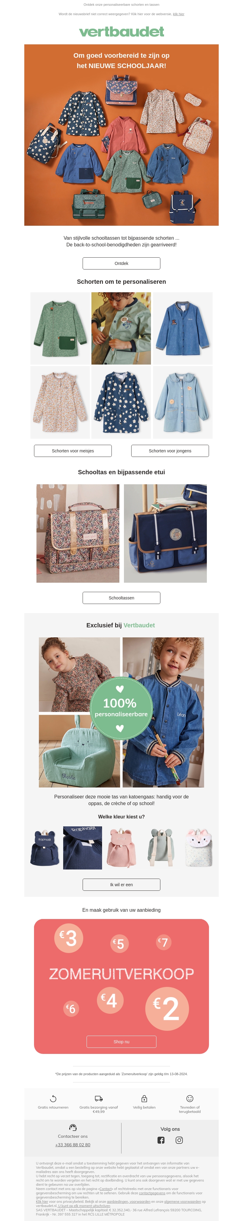 Het nieuwe schooljaar staat voor de deur en Vertbaudet heeft alles wat je nodig hebt om goed voorbereid te zijn. Van trendy schooltassen tot gepersonaliseerde schorten, onze producten combineren stijl en functionaliteit. Bekijk onze ruime selectie en maak je keuze voor een geweldig schooljaar.