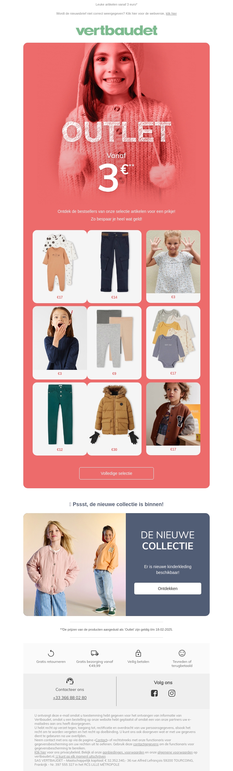 Profiteer van de geweldige uitverkoop bij Vertbaudet met artikelen vanaf slechts 3 euro! Ontdek onze zorgvuldig geselecteerde kinderkleding en accessoires voor uitzonderlijke prijzen. Van schattige pyjama's tot stoere jassen, wij hebben voor ieder wat wils. Mis deze kans niet om uw kleintjes stijlvol te kleden zonder de bank te breken. Duik nu in onze collectie en bespaar terwijl u de nieuwste trends ontdekt!