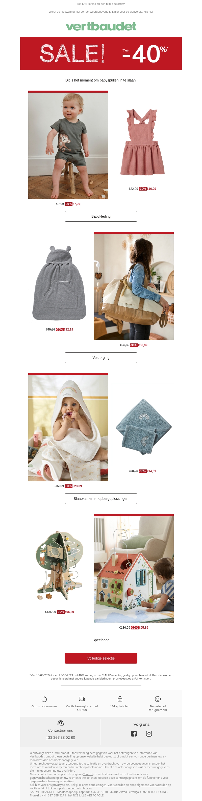 Profiteer nu van onze grote sale op babyspullen! Van schattige kleding tot handige verzorgingsproducten, alles met kortingen tot wel 40%. Dit is het perfecte moment om alles in huis te halen wat je nodig hebt voor je kleintje. Neem snel een kijkje en bespaar op onze fantastische aanbiedingen.