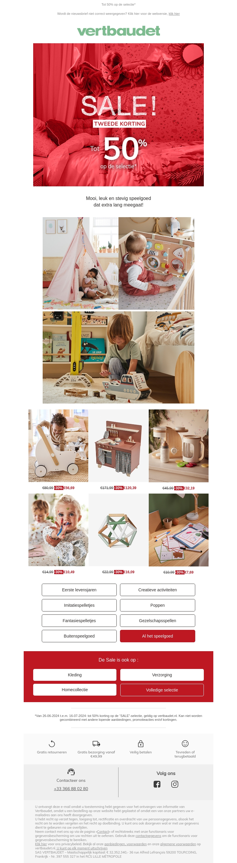 Grijp nu je kans en bespaar tot 50% op onze selectie van stevig en leuk speelgoed! Van creatieve activiteiten tot buitenspeelgoed, er is voor ieder kind wat wils. Mis deze geweldige aanbiedingen niet!