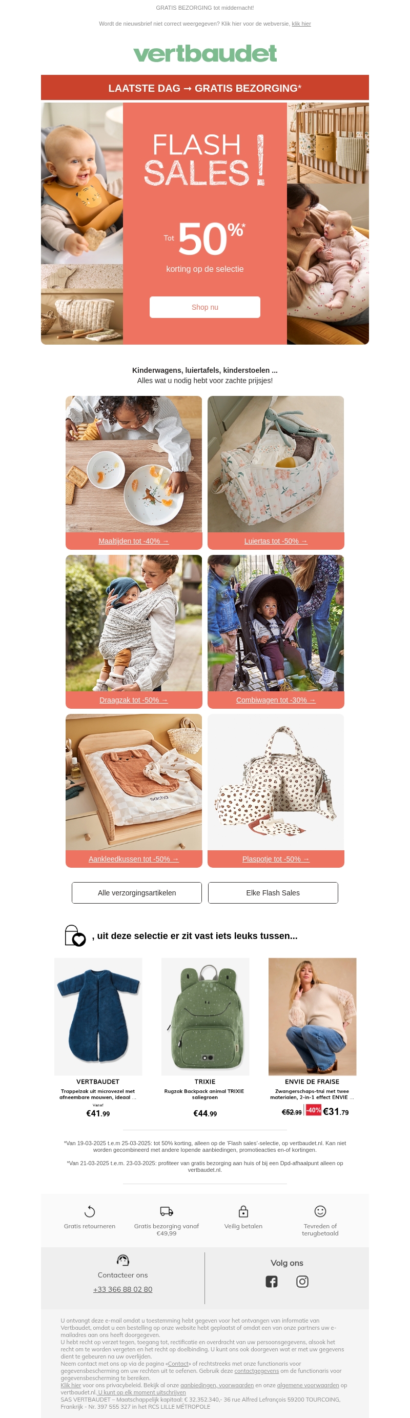 Ontdek de beste kortingen op babyverzorgingsproducten bij Vertbaudet. Met kortingen tot 50% vindt u alles wat u nodig heeft voor uw kleintje, van kinderwagens tot draagzakken. Mis de flash sales niet en bespaar vandaag nog! Bekijk al onze verzorgingsartikelen en geniet van gratis bezorging bij bepaalde aankopen.