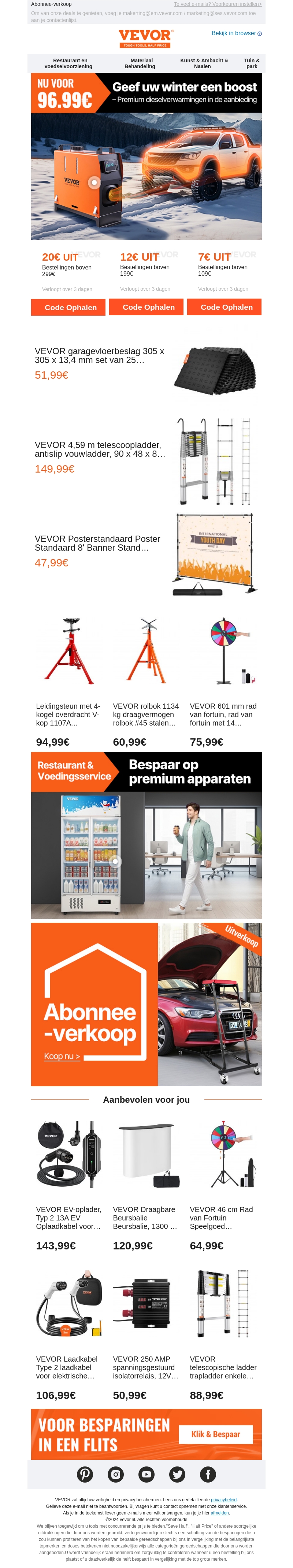 Besteed deze winter minder met onze premium dieselverwarmingen, nu beschikbaar voor 96,99€. Ideaal voor verschillende toepassingen en eenvoudig te installeren. Profiteer daarnaast van extra kortingen op bestellingen boven 299€, 199€ en 139€. Mis deze kans niet en haal de warmte in huis met VEVOR.