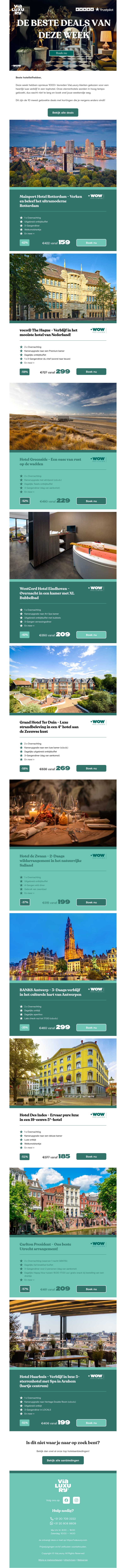 Deze week hebben we de top 10 beste deals voor jou verzameld. Ontdek nu geweldige aanbiedingen voor allerlei bestemmingen, inclusief verblijven in luxe hotels en unieke locaties. Mis de kans niet om te profiteren van deze exclusieve kortingen!
