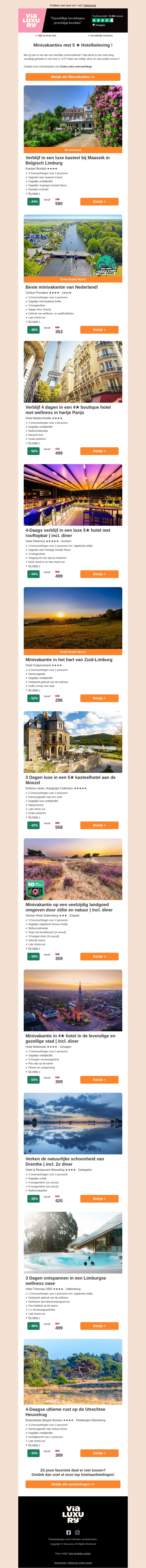 5✩ Minivakanties met Gratis extra nacht