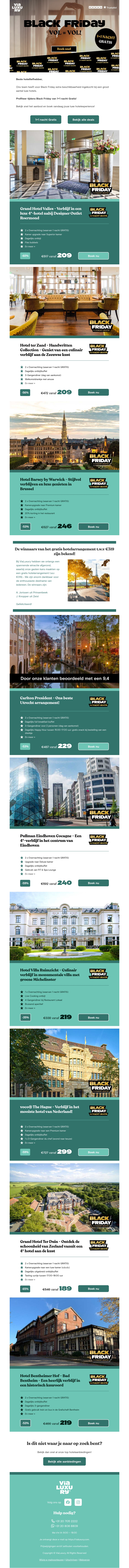 Beleef de ultieme luxe met onze Black Friday aanbieding: boek een nacht in een van onze luxe hotels en krijg er een gratis nacht bij! Ontdek prachtige bestemmingen en geniet van exclusieve faciliteiten. Deze limited-time deal is perfect voor een romantisch uitje of een ontspannen weekend. Mis deze kans niet en boek nu. Alle aanbiedingen zijn geldig voor een beperkte periode. Ontsnap aan de dagelijkse drukte en ververs je energie.