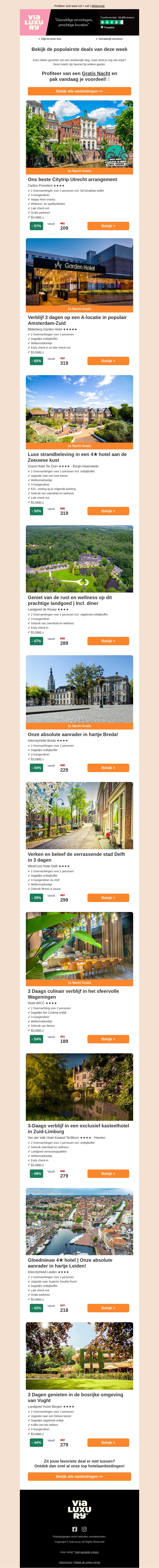 Verwen jezelf met een verblijf in de best beoordeelde hotels. Profiteer tijdelijk van een gratis nacht en geniet van luxe accommodaties in prachtige bestemmingen binnen Nederland. Boek nu en pak deze unieke aanbieding!