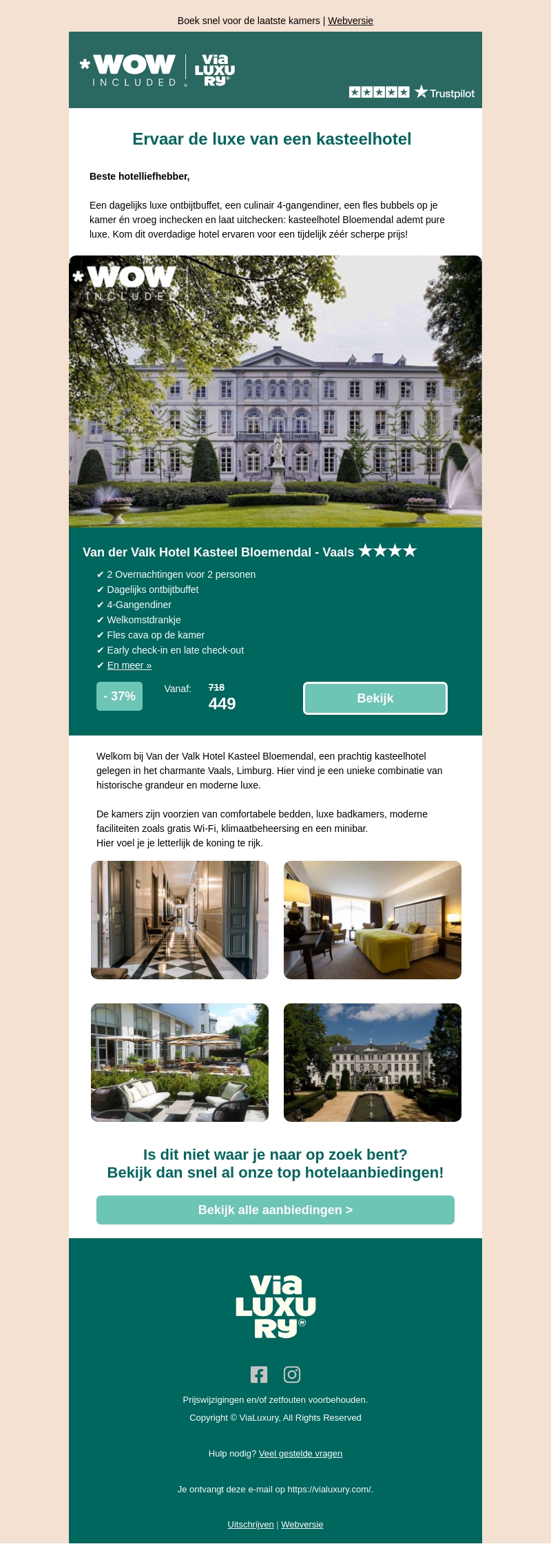 Ervaar de luxe van Kasteelhotel Bloemendal in Vaals met een exclusief aanbod! Geniet van comfort en weelde met een dagelijks ontbijt, 4-gangendiner, fles bubbels op de kamer en meer. Boek nu voor een tijdelijk scherpe prijs.