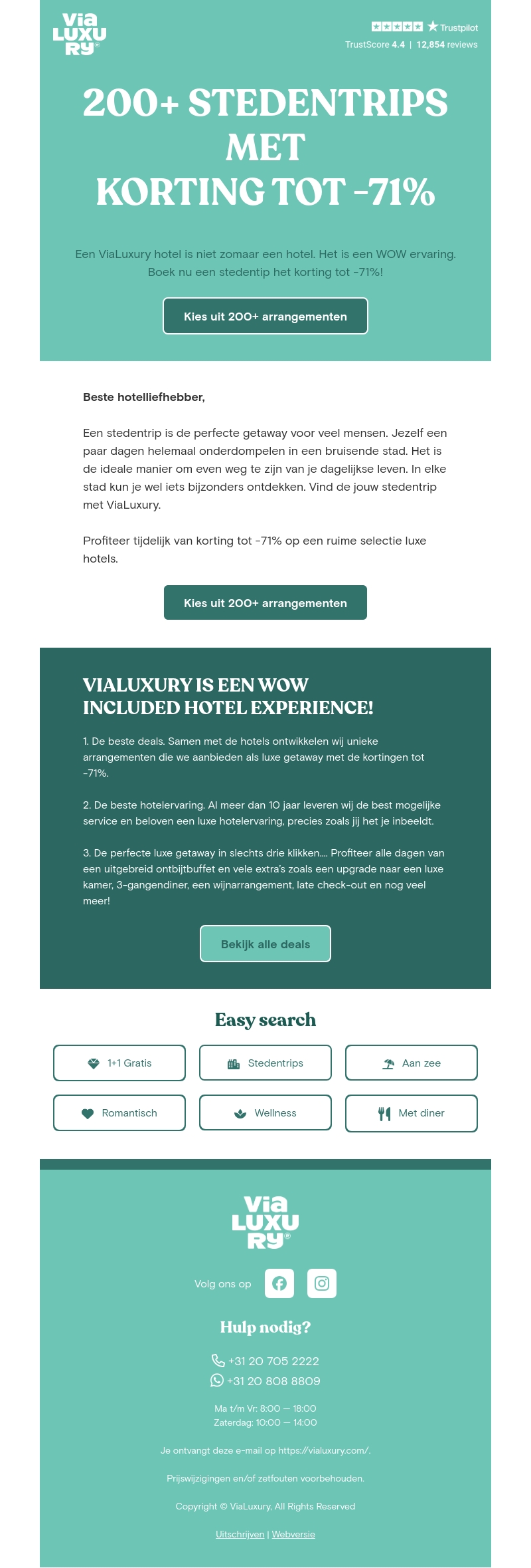 Beste hotel liefhebber, geniet van meer dan 200 stedentrips met kortingen tot -71%! ViaLuxury biedt een unieke hotelervaring in bruisende steden. Boek nu en beleef de perfecte luxe getaway.