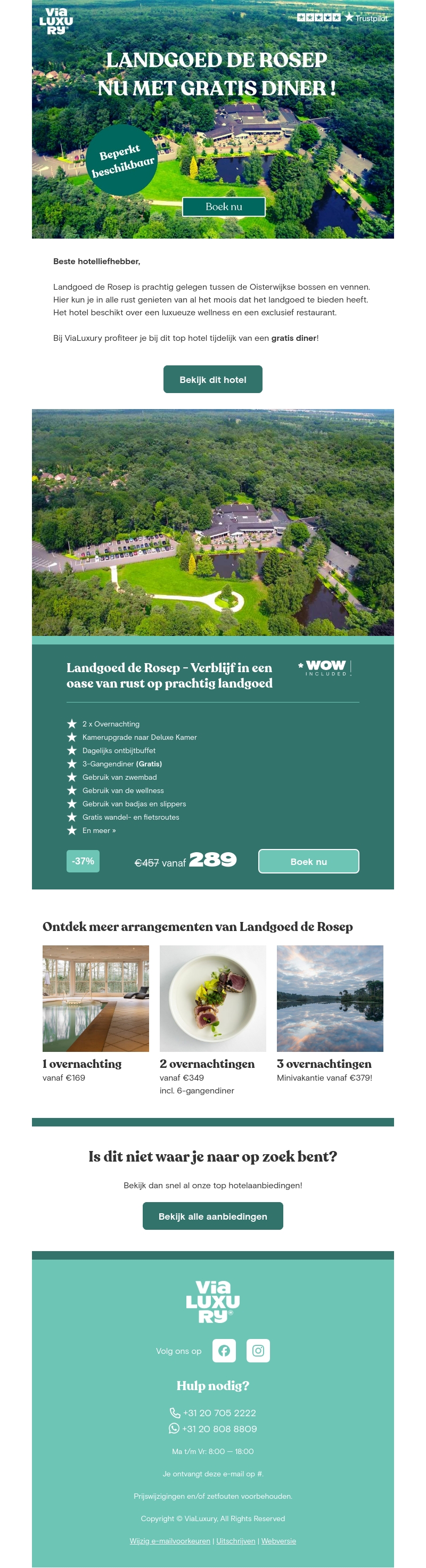 Landgoed de Rosep biedt een prachtige ontsnapping tussen de bossen en vennen van Oisterwijk. Geniet van een onvergetelijk verblijf met een gratis 3-gangendiner en toegang tot luxe faciliteiten zoals wellness en een exclusief restaurant. Boek nu en ervaar ultiem comfort en rust.
