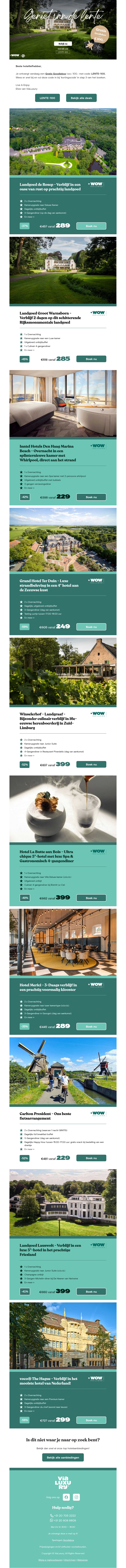 Geniet van een gratis Goodiebox ter waarde van €100,- bij je volgende boeking. Verken prachtige locaties, profiteer van exclusieve deals en beleef onvergetelijke ervaringen. Boek nu en ontvang deze speciale aanbieding direct bij aankomst.