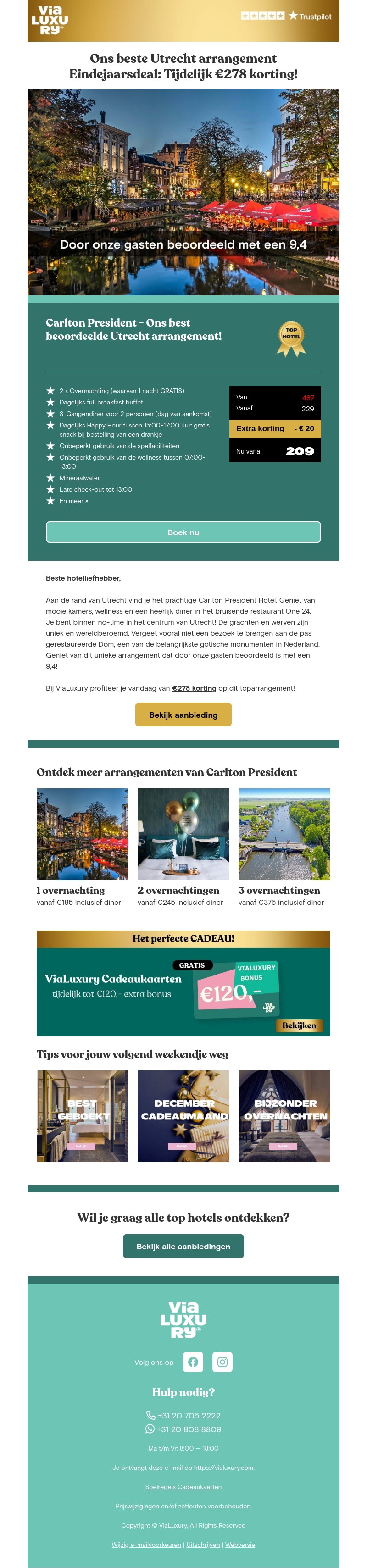 Beleef een luxe ervaring in het Carlton President Hotel in Utrecht met onze speciale eindejaarsdeals. Geniet van exclusieve korting, wellnessfaciliteiten, en gastronomische hoogstandjes. Verblijf op een steenworp afstand van het centrum en ontdek het beste van de stad. Beschikbaar voor een beperkte tijd met extra voordelen. Boek nu om te profiteren van deze unieke aanbieding!