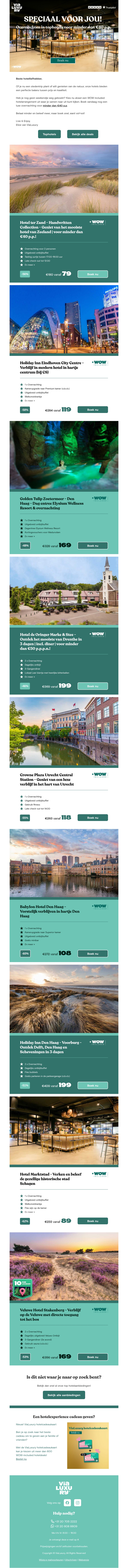 Deze nieuwsbrief biedt u de kans om te overnachten in luxe hotels voor minder dan €40 per persoon. Van de prachtige kust van Nederland tot bruisende stadscentra, er zijn talloze mogelijkheden om van te genieten. Of u nu op zoek bent naar rust in de natuur of de charme van een stad wilt ontdekken, er is voor ieder wat wils. Grijp deze unieke aanbiedingen en plan uw perfecte uitje.