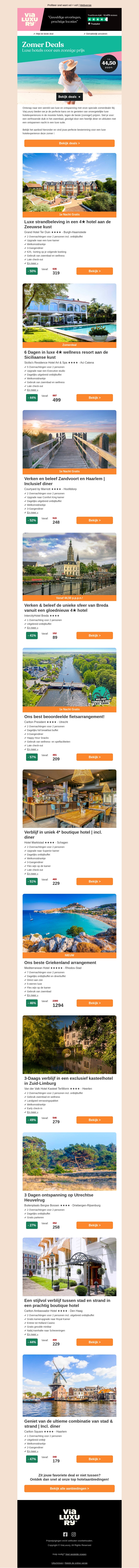 Profiteer van de nieuwste zomerdeals met prijzen vanaf slechts €44,50. Ontdek verschillende reisbestemmingen en accommodaties, variërend van luxe hotels aan de kust tot unieke boutique hotels in de stad. Mis deze kans niet om te besparen op je volgende vakantie!