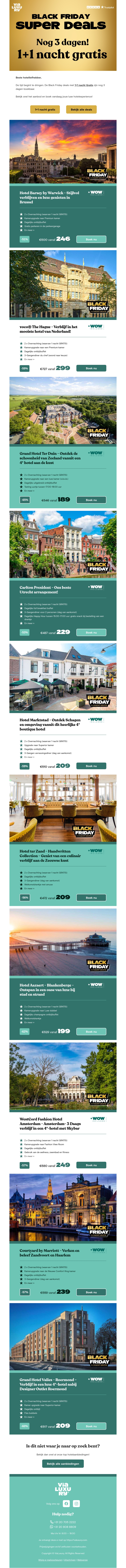 Beleef de Black Friday super deals met een unieke kans op een 1+1 nacht gratis overnachting. Ontdek diverse prachtige bestemmingen en verleng jouw verblijf zonder extra kosten. Mis deze speciale aanbieding niet en boek vandaag nog!