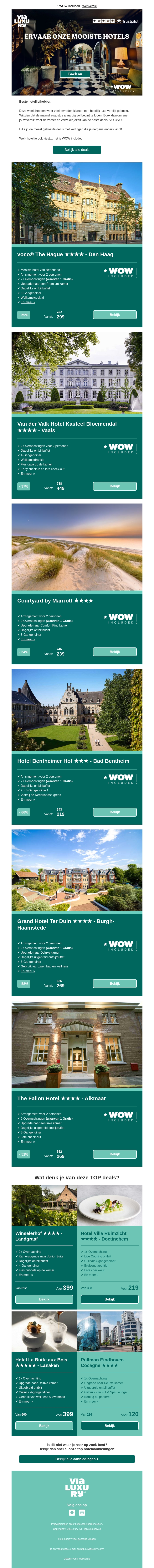 Ontvang tot 70% korting en een gratis hotelovernachting bij een van onze schitterende hotels. Kies uit diverse locaties en geniet van luxe faciliteiten en mooie omgevingen. Boek nu om deze exclusieve aanbiedingen niet te missen.