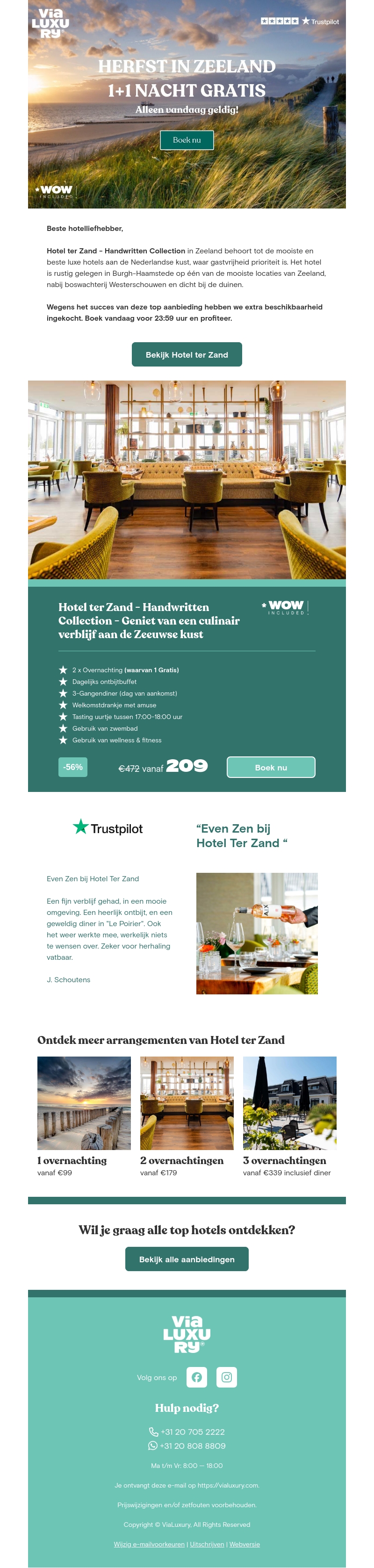 Wegens succes verlengd π Gratis hotelovernachting in het beste hotel van Zeeland