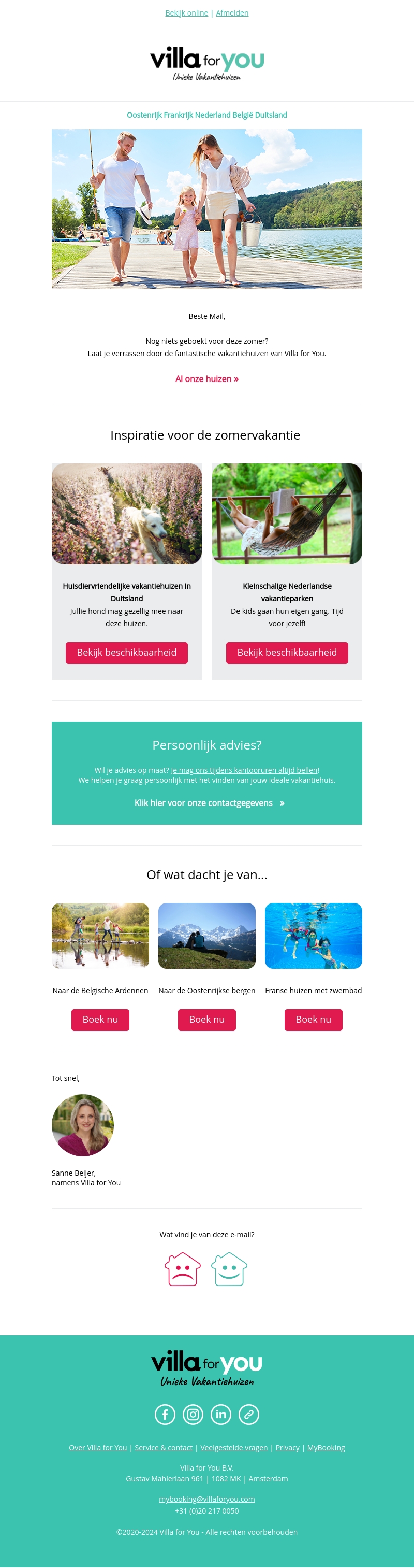 Bent u nog op zoek naar de perfecte zomerbestemming? Ontdek het uitgebreide aanbod van Villa for You met huisdiervriendelijke vakantiehuizen en kleinschalige Nederlandse vakantieparken. Profiteer van exclusieve aanbiedingen en persoonlijke adviesdiensten. Begin vandaag nog met het plannen van uw droomvakantie!