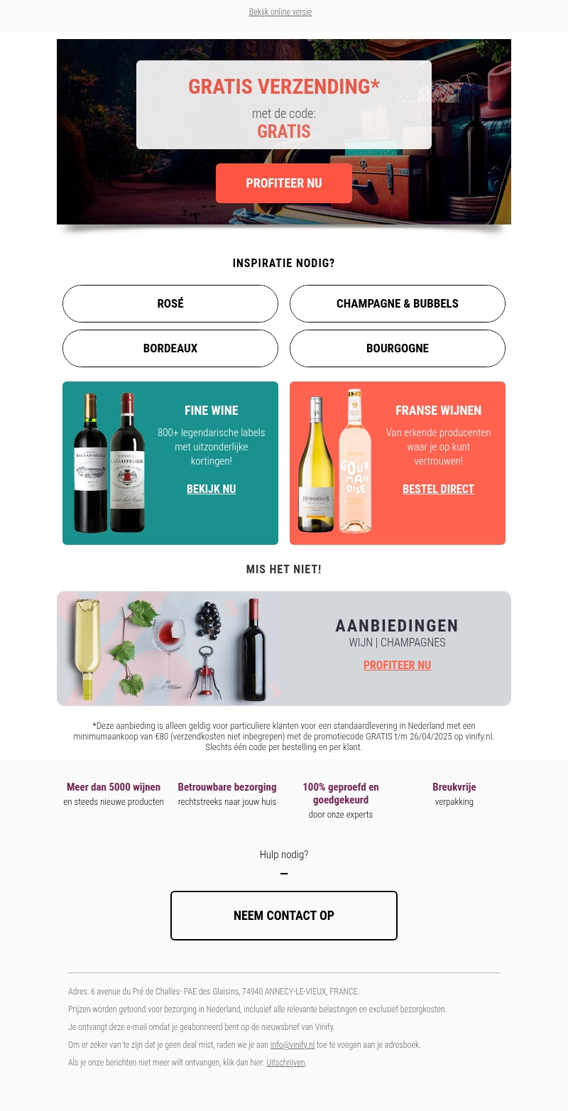 GRATIS VERZENDING op de hele site 🚚🍷 slechts 48 uur!