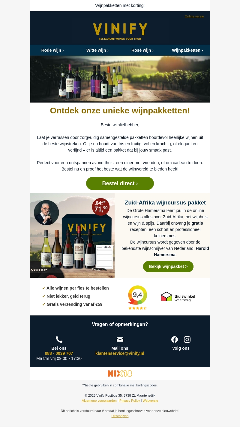 Verwen jezelf met zorgvuldig samengestelde wijnpakketten van Vinify. Kies uit de beste wijnen ter wereld, van fris en fruitig tot vol en krachtig. Perfect om thuis te ontspannen, samen te dineren, of als cadeau. Nu met gratis recepten en schort bij een wijncursus.