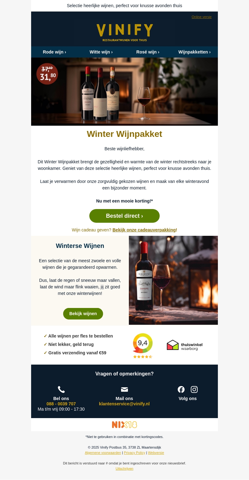 Ontdek het Winter Wijnpakket van Vinify met zorgvuldig geselecteerde wijnen. Deze selectie brengt de winterse gezelligheid direct naar je huis. Bestel nu en profiteer van een aantrekkelijke korting. Perfect voor knusse avonden thuis.