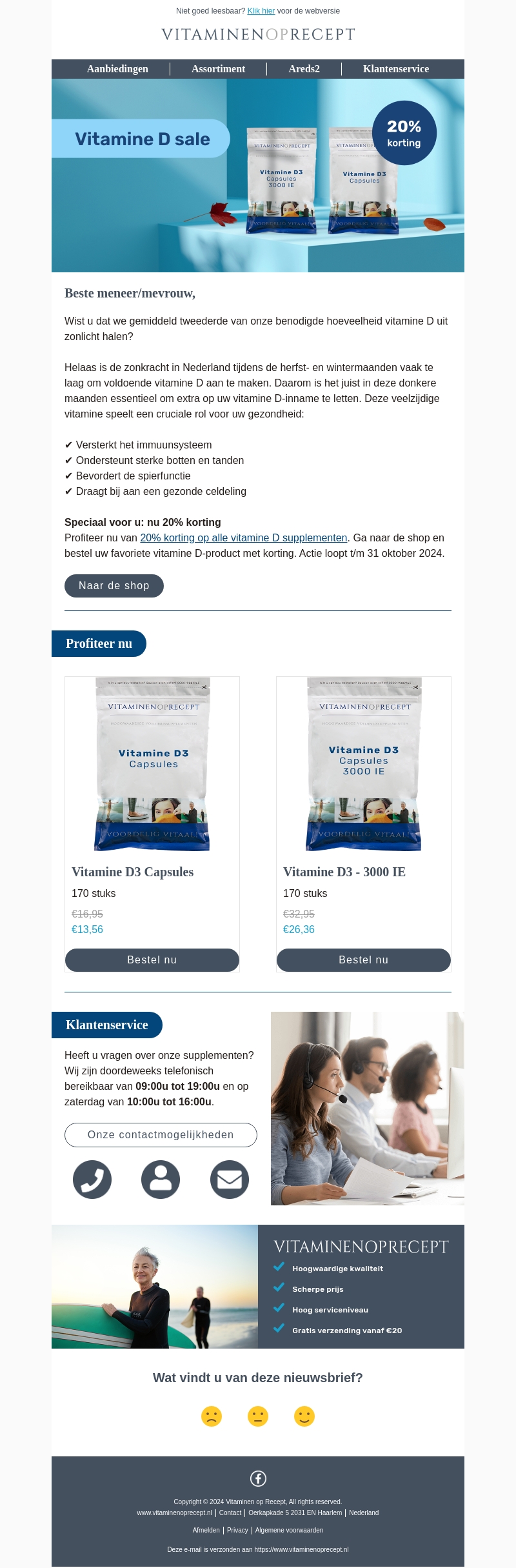 Mis deze kans niet om Vitamine D supplementen met 20% korting aan te schaffen! Perfect voor de herfst- en wintermaanden, wanneer de zonkracht laag is. Vitamine D ondersteunt je immuunsysteem, botten, tanden, spierfunctie en celdeling. Bestel voor 31 oktober 2024!