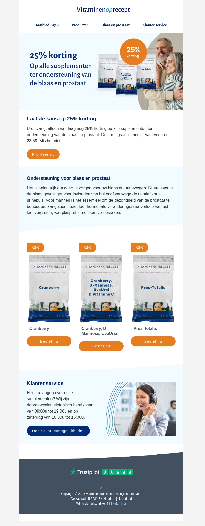 Laatste kans: 25% korting op alle supplementen voor blaas en prostaat