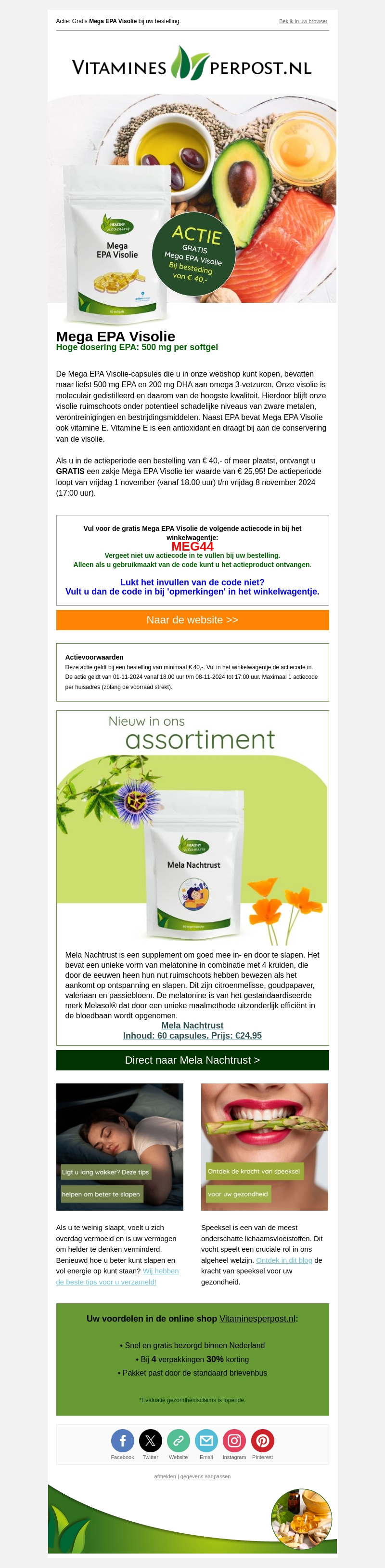 Actie: Gratis Mega EPA Visolie bij uw bestelling.