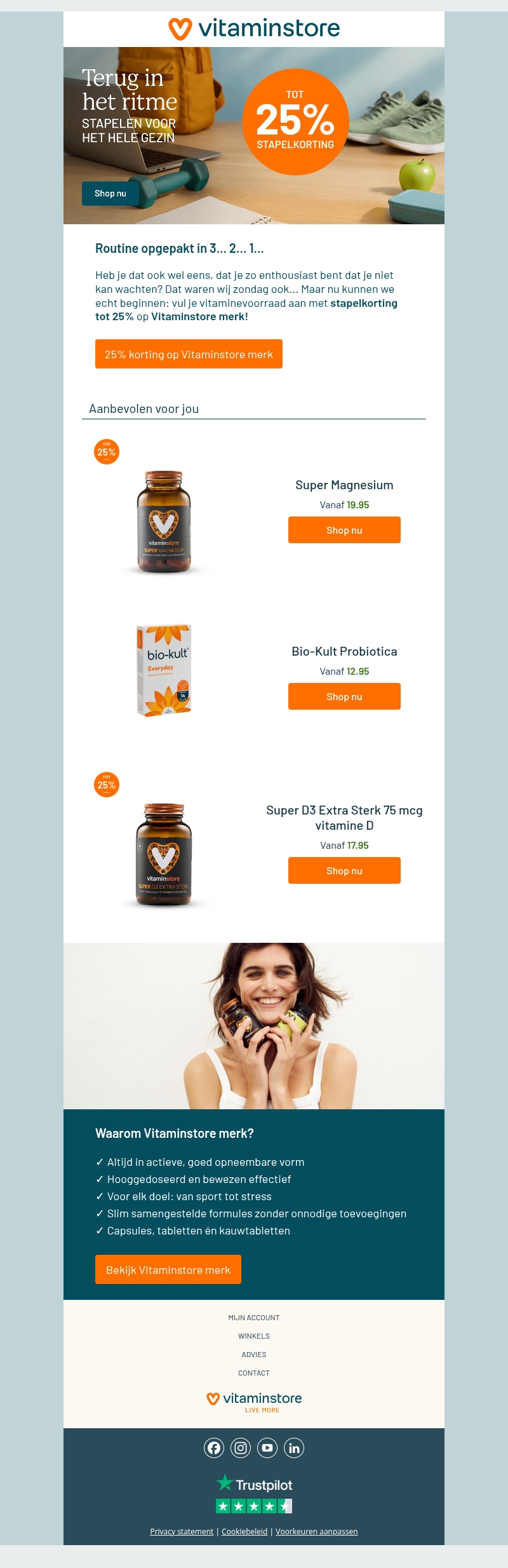 Nu gaan we echt van start: 25% stapelkorting op Vitaminstore merk