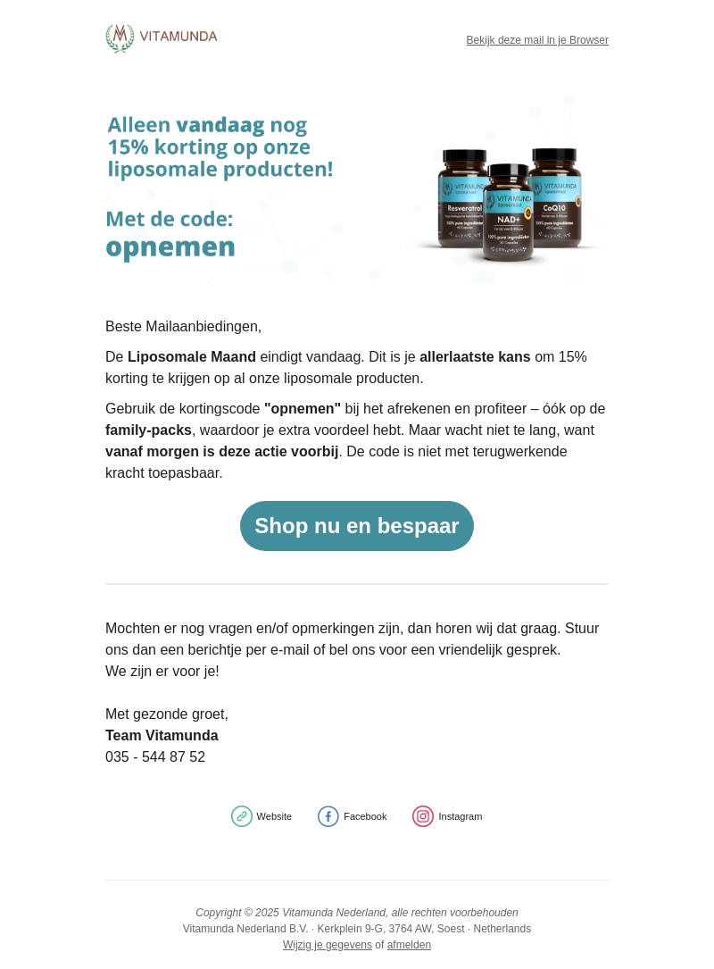 Laatste Dag - 20% korting op het volledige Vitamunda assortiment