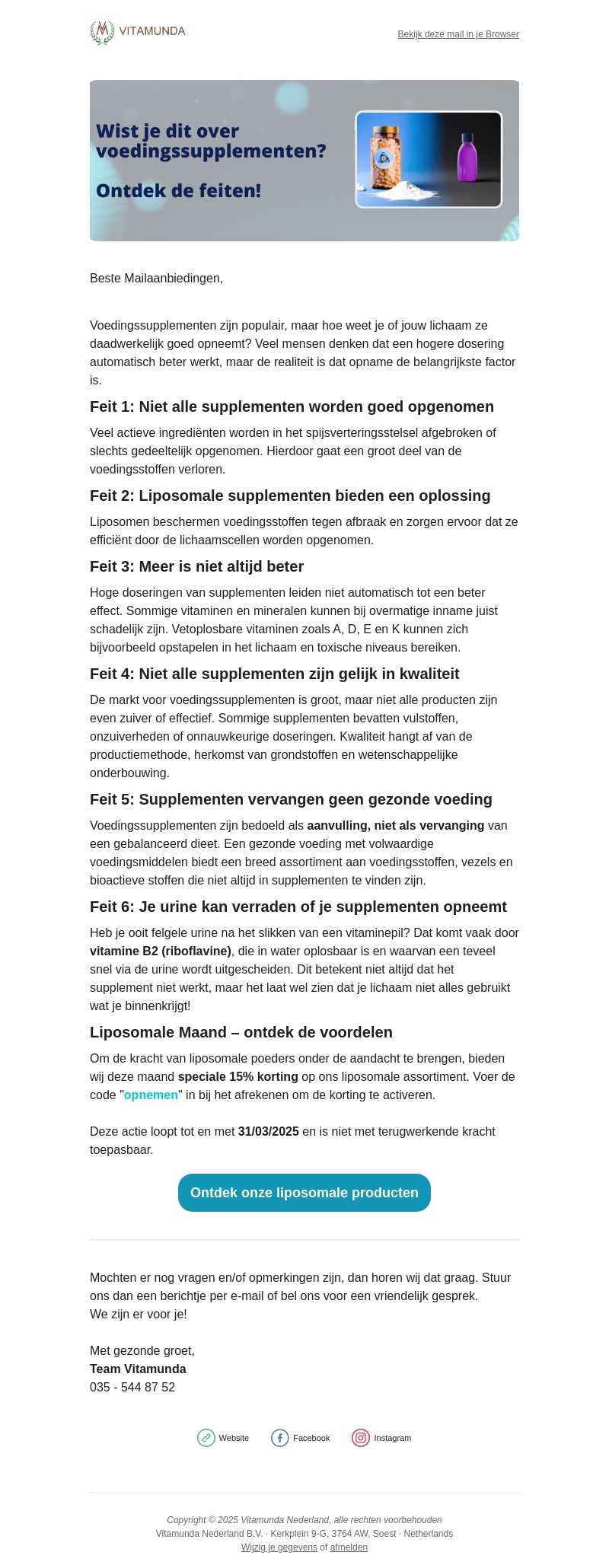 Voedingssupplementen zijn populair, maar hoe goed worden ze opgenomen? Deze nieuwsbrief onthult belangrijke feiten over de opname van supplementen en introduceert liposomale producten als efficiënte oplossing. Lees meer over hoe een juiste opname het verschil maakt met onze speciale aanbieding.