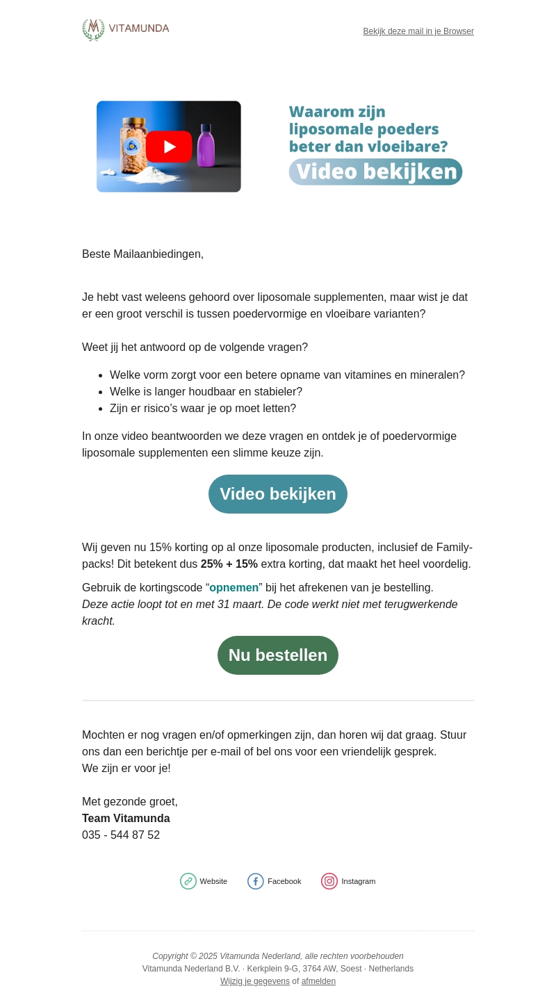 Heb je ooit gehoord van liposomale supplementen? Ontdek nu het verschil tussen poedervormige en vloeibare varianten. Leer welke optie betere opname biedt, langer houdbaar is en of er risico’s zijn waar je op moet letten. Bekijk de video en gebruik onze kortingscode voor 15% extra korting!
