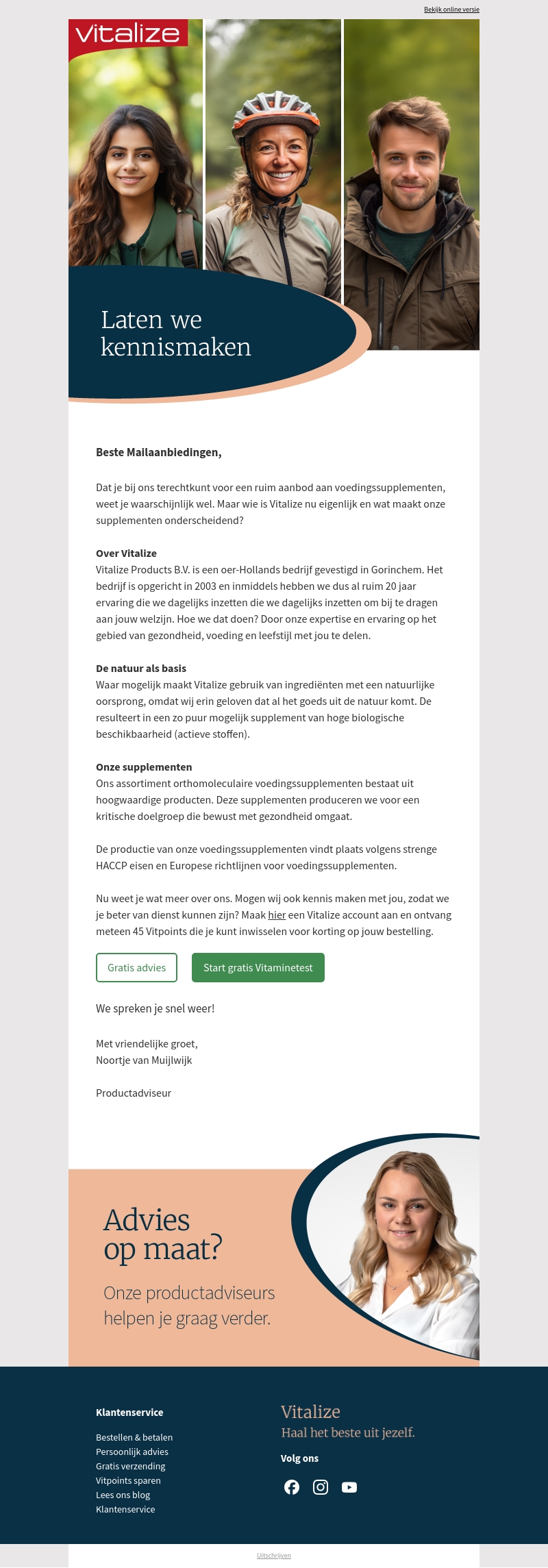 Maak kennis met Vitalize, het oer-Hollandse bedrijf dat sinds 2003 hoogwaardige voedingssupplementen aanbiedt. Ontdek hoe hun producten, gemaakt met natuurlijke ingrediënten, bijdragen aan jouw welzijn. Profiteer van gratis advies en een gratis vitaminetest.