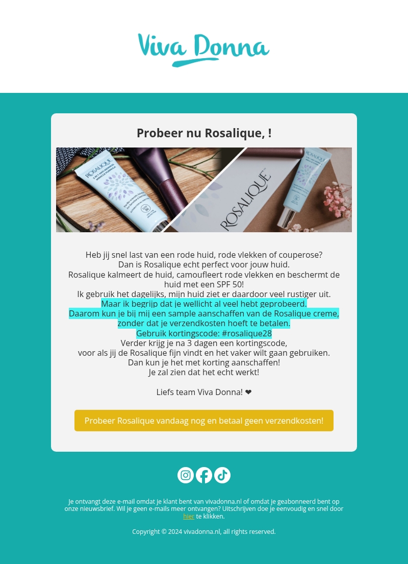 Pak deze kortingscode: #rosalique28