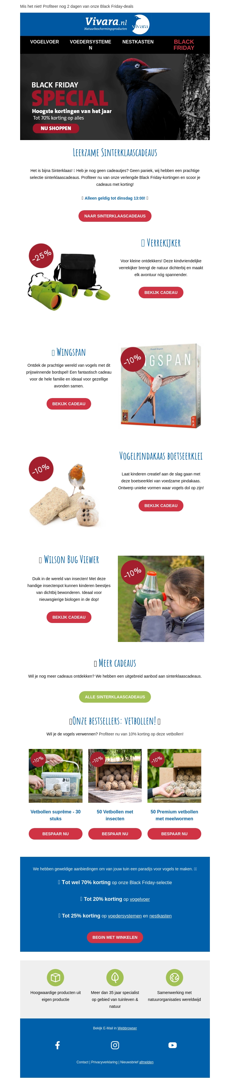 Het is bijna Sinterklaas! Ontdek een prachtige selectie cadeaus met geweldige Black Friday-kortingen. Deze aanbieding is alleen geldig tot dinsdag 13:00! Vergeet niet dat je tot 70% korting kunt krijgen op alles, inclusief exclusieve producten voor de tuin en natuur.