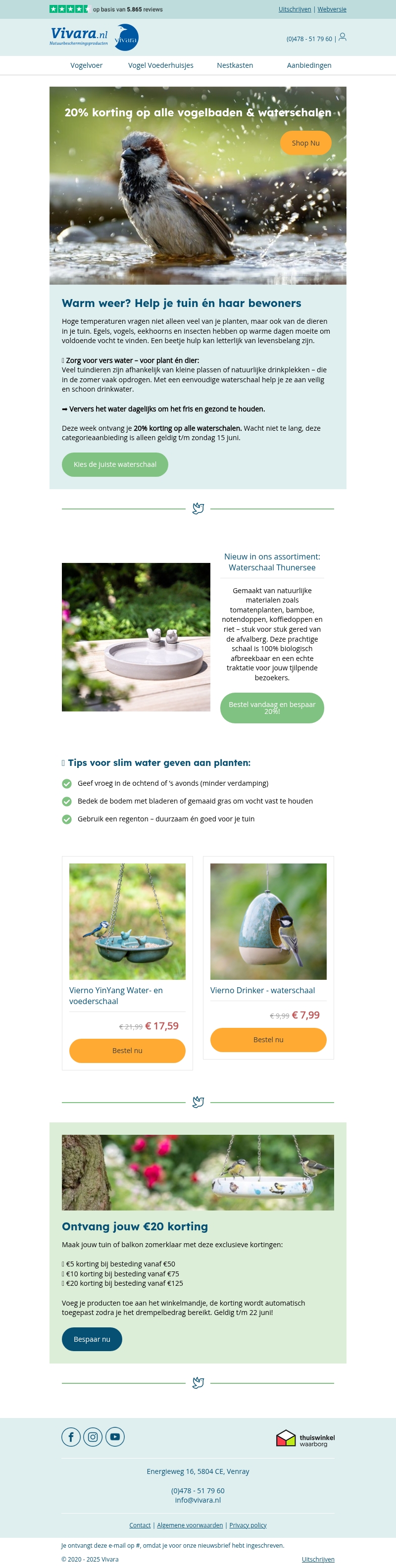 ☀️ Houd vogels koel – bespaar 20% op alle vogelbaden & waterschalen