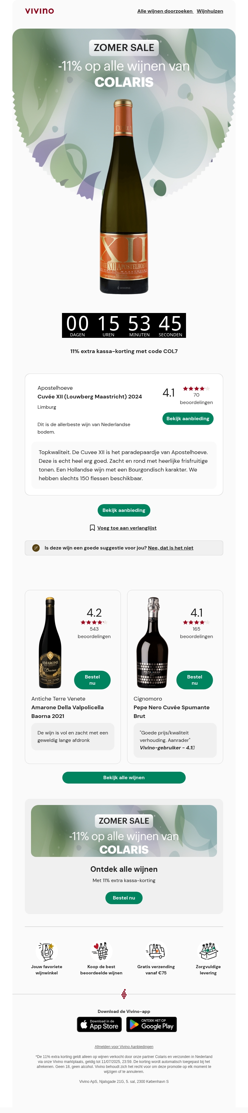 Alleen vandaag: -11% extra kassa-korting op alle wijnen van Colaris