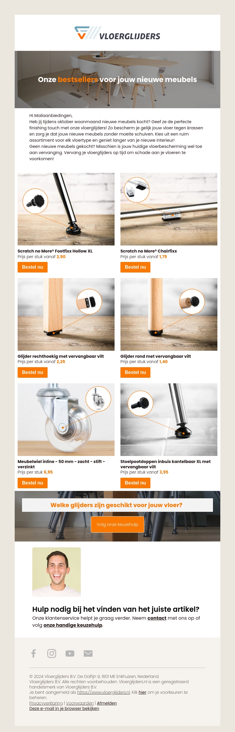 Heb je nieuwe meubels gekocht tijdens oktober woonmaand? Geef ze de perfecte finishing touch met onze vloerbeschermers. Bescherm je vloer tegen krassen en zorg ervoor dat je meubels gemakkelijk schuiven. Kies uit ons brede assortiment en geniet langer van je interieur.