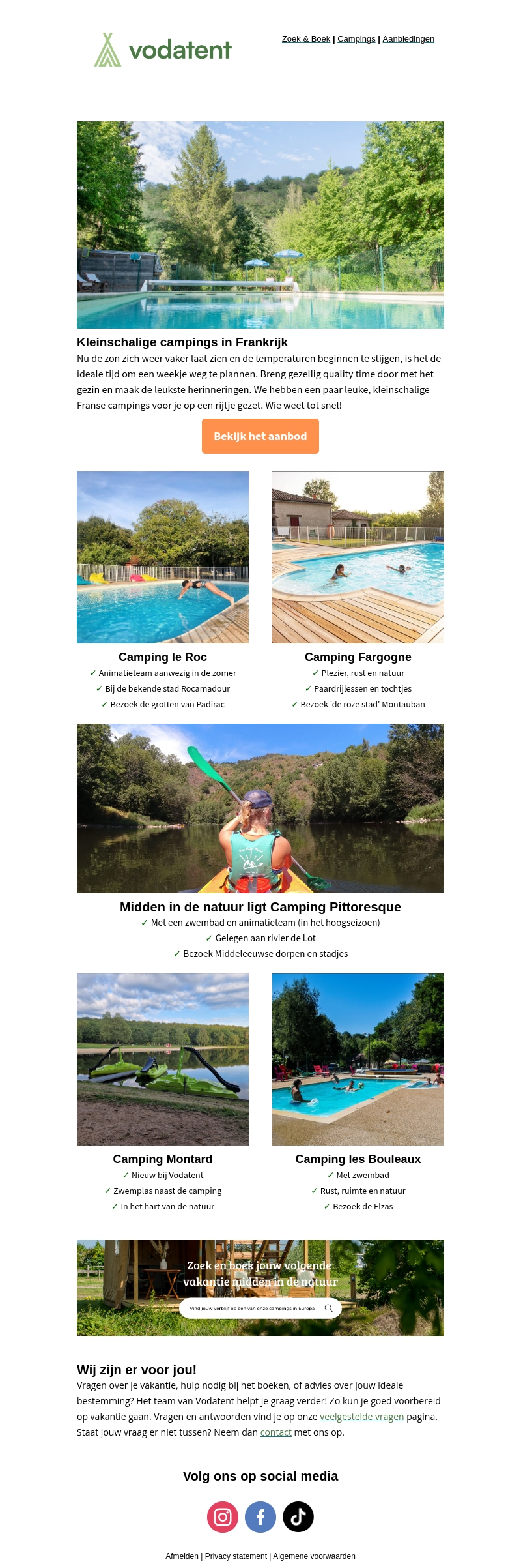 Plan je volgende vakantie op een van de prachtige kleinschalige campings in Frankrijk. Geniet van de natuur, rust en unieke ervaringen zoals paardrijden en middeleeuwse dorpen. Ervaar quality time met je gezin en creรซer mooie herinneringen. Bezoek campings zoals Le Roc, Fargogne, en ontdek de schoonheid van de Franse landschappen. Boek nu en beleef een onvergetelijke vakantie.