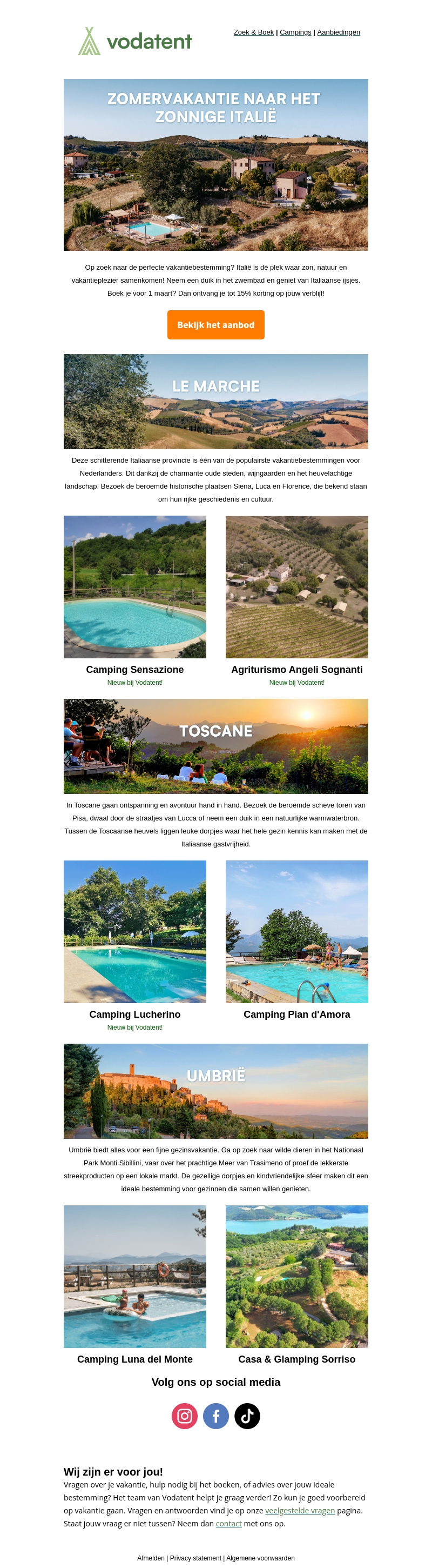 Op zoek naar een zomervakantie vol zon en avontuur? Italië biedt prachtige bestemmingen zoals Toscane, Umbrië en Le Marche. Of je nu ontspanning zoekt bij een warmwaterbron of historische steden wil bezoeken, Italië heeft het allemaal. Boek nu en profiteer van aantrekkelijke kortingen.