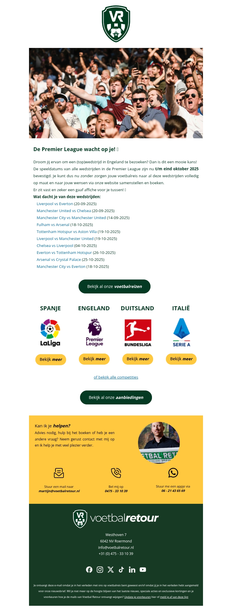 Onze Champions League voetbalreizen zijn nu beschikbaar π