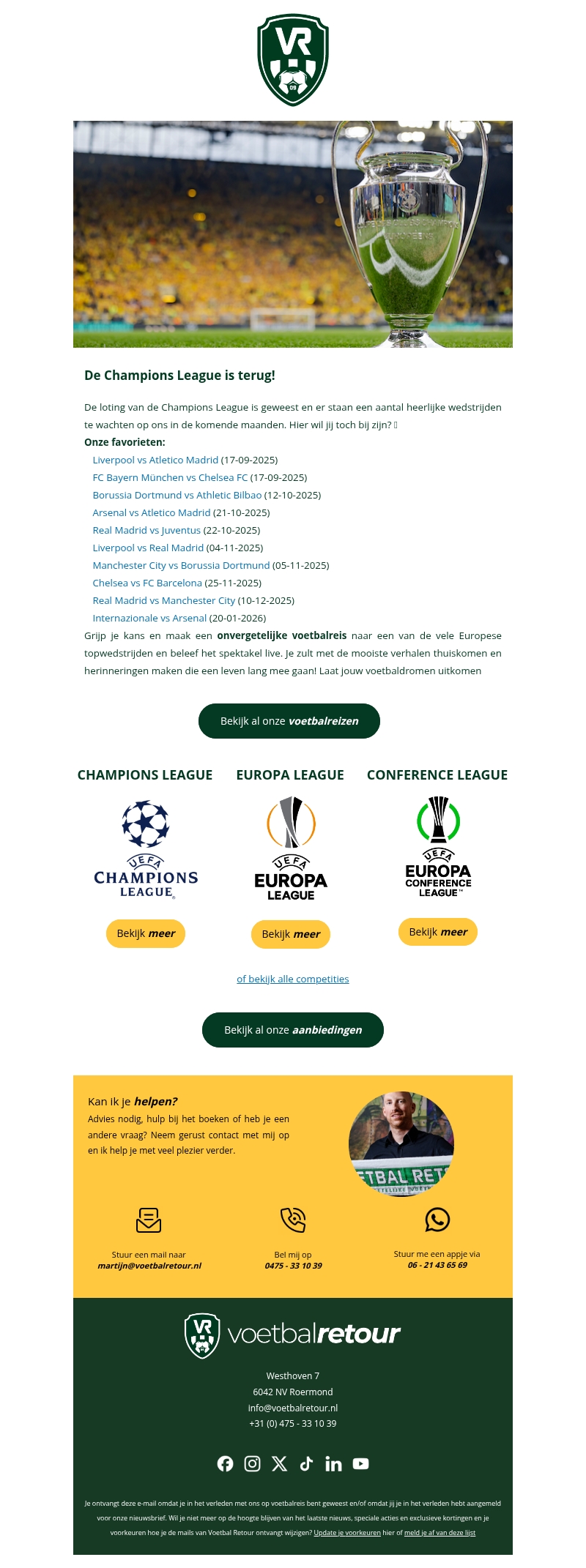 Onze Champions League voetbalreizen zijn nu beschikbaar π