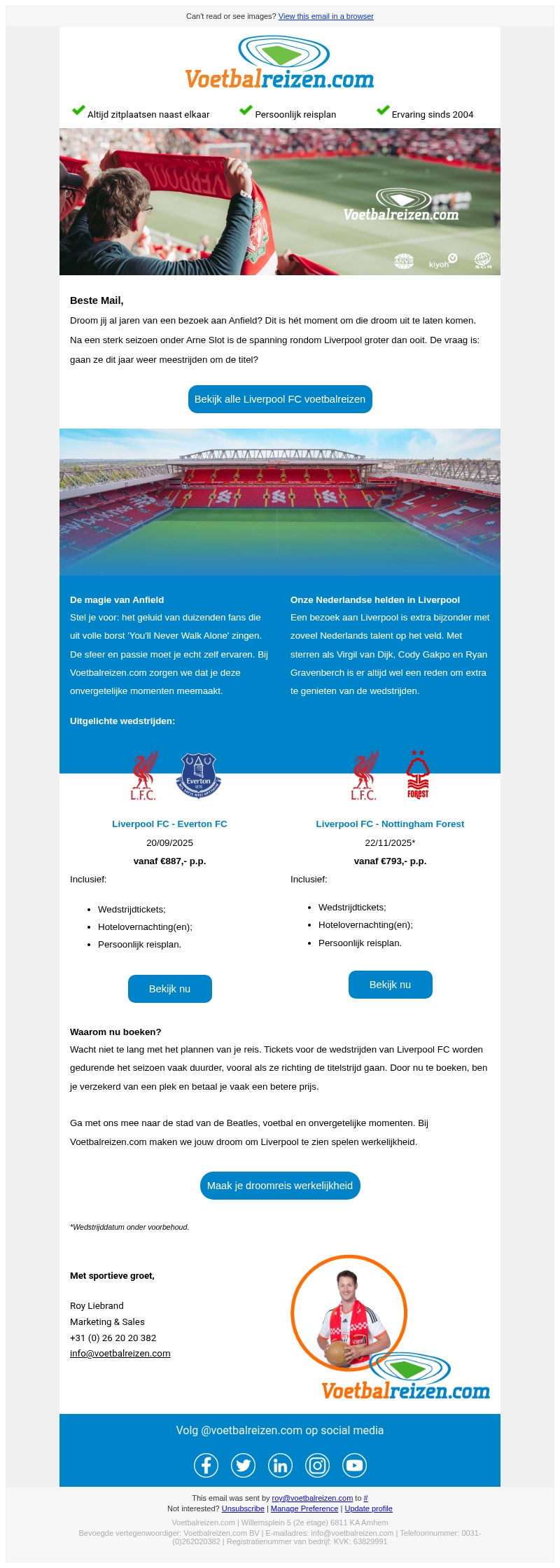 Mail Maak jij een complete voetbalreis naar Liverpool voor €375,-?