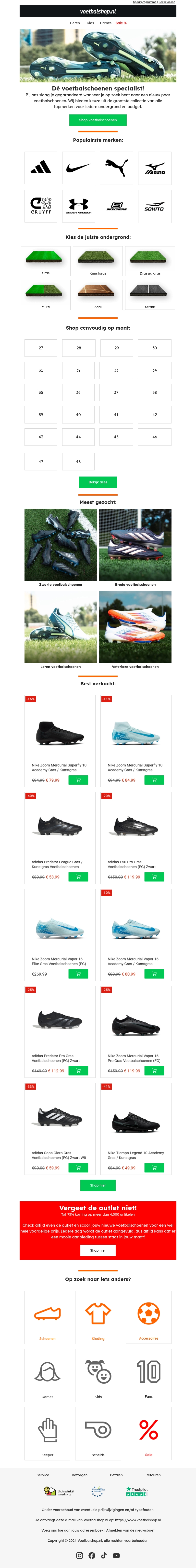 Ben je op zoek naar de perfecte voetbalschoenen? Ontdek nu de nieuwste collecties van topmerken zoals Adidas, Nike en Puma. Geschikt voor elk type gras of kunstgras, en met speciale aanbiedingen. Mis de kans niet om jouw ideale paar te scoren!