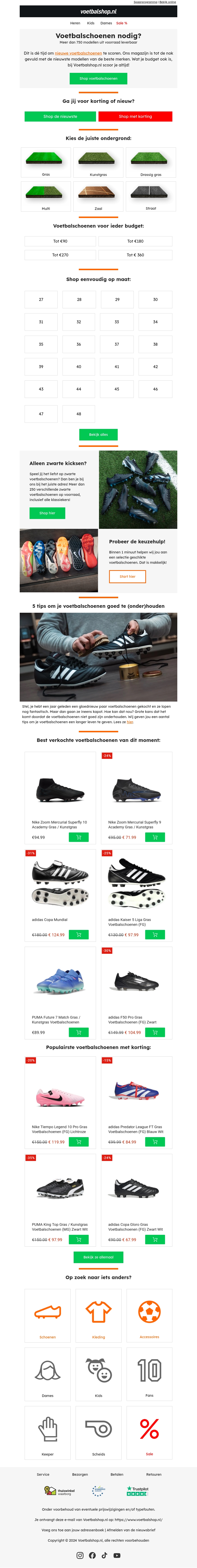 Ga jij voor korting of nieuw? Zwart of kleur? Gras of kunstgras?
